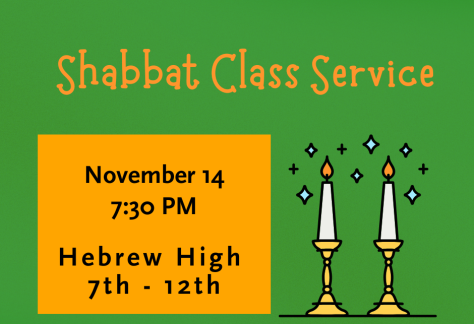 8:00 pm Havdalah Saturday evening (varies with sunset)