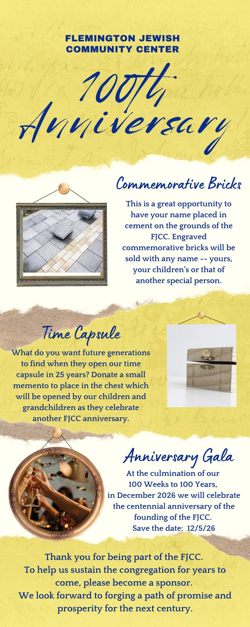 The Flemington Jewish Community Center was established in December 1926 and will soon celebrate 100 years of serving the Jewish community of Hunterdon County. A number of exciting events are planned to mark the occasion and we look forward to having you join the party!