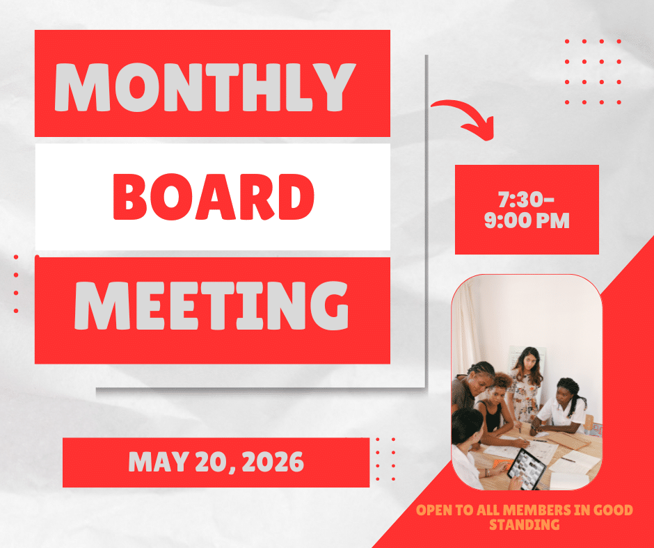The May meeting of the Board of Trustees will be held on May 20th at 7:30 at the FJCC. All members-in-good-standing are welcome to attend the meeting. For security reasons, if you are interested in attending, please inform the office.