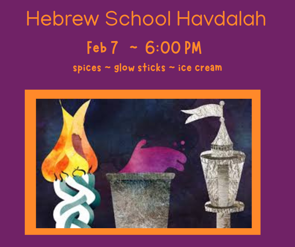 On Saturday evenings, we pause to transition from Shabbat, the day of rest, to our routine weekly activities. So, Saturday, February 7th at 6:00 pm the FJCC presents a special Havdalah program geared for families with children in the Hebrew/Sunday school classes. Together we will celebrate!